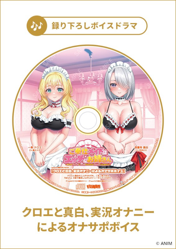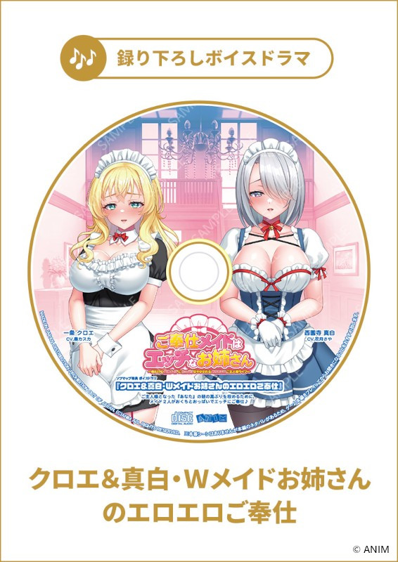ご奉仕メイドはエッチなお姉さん ~俺だけの巨乳メイドにたっぷり甘やかされるめちゃエロご主人様ライフ~ FANZAで見る ブランド:ANIM(過去の作品一覧) メディア:DVD-ROM 発売日:2026-04-24 定価:¥ 6,800(税込¥ 7,480) ジャンル:お姉さんメイドにエッチな甘やかしご奉仕されるAVG 原画: 紅葉-K、まる。、リャオ シナリオ: シャア専用◎、内藤自由 音楽:ayato sound create アーティスト: 作詞/作曲: 関連リンク Getchu.com:あらすじ、キャラクターを見る 特典紹介画像URLについて 描き下ろし特典 投票 投票数:12 Getchu.com ① 描き下ろしB2タペストリー ・ 2026-02-01 更新 © ANIM 投票 投票数:3 メロンブックス ① 描き下ろしB2タペストリー ・ 2026-02-04 更新 © ANIM 投票 投票数:2 駿河屋 ① 描き下ろしB2タペストリー ・ 2026-02-01 更新 © ANIM 投票 投票数:0 ソフマップ ① 録り下ろしボイスドラマCD ① クロエ&真白・Wメイドお姉さんのエロエロご奉仕 2026-02-25 更新 © ANIM 投票 投票数:0 Amazon.co.jp ① 録り下ろしボイスドラマCD ① クロエと真白、実況オナニーによるオナサポボイス 2026-02-25 更新 © ANIM オリジナル特典 投票 投票数:10 アリスNET ① オリジナルプラスチックカード ・ 2026-02-25 更新 © ANIM 投票 投票数:7 古川電気 ① オリジナルプラスチックカード ・ 2026-02-25 更新 © ANIM 投票 投票数:3 よろずやショップびっく宝島 ① オリジナルプラスチックカード ・ 2026-02-25 更新 © ANIM 投票 投票数:2 パソコンショップMK ① オリジナルプラスチックカード ・ 2026-02-25 更新 © ANIM 投票 投票数:2 あみあみ ① オリジナルイラストカード ・ 2026-02-25 更新 © ANIM 投票 投票数:1 プロップ通販 ① オリジナルテレカ ・ 2026-02-25 更新 © ANIM 投票 投票数:0 中京マイコン ① オリジナルA4イラストクロス ・ 2026-02-25 更新 © ANIM 投票 投票数:0 FANZA ① オリジナルA4イラストクロス ・ 2026-02-25 更新 © ANIM << Prev Next >> DLタイトルPowered by FANZA Webサービス ANIM.teamMM 寝取ラレ寝取ラセ欲ばりセット 〜人気の若妻からオギャれるママまでネットリ堪能できちゃう厳選5本パック〜DL価格:¥ 9,480 壁の向こうの妻の嬌声3 〜薄壁から響く隣人妻の艶声は、いつしか愛する妻の淫れたヨガり声へと変わっていた〜DL価格:¥ 6,160 僕がいない間に変貌えられた妻の秘肉〜ラブラブ新婚妻は他の男に抱かれ淫らに喘ぐ夢を見るか〜【萌えゲーアワード2023 エロス系作品賞BLACK 受賞】DL価格:¥ 6,160 メスつまみ3 〜しっかり年下妻とおっとり年上妻とのエロハメ肉欲性活〜DL価格:¥ 6,160 いつまでも息子のママじゃいられない!トリロジーパックDL価格:¥ 9,000 壁の向こうの妻の嬌声(こえ)〜愛する妻の肢体(からだ)はもう、隣の旦那を忘れられない〜DL価格:¥ 5,217 彼女の肢体に付いたアイツの唇痕 〜幼馴染みの巨乳彼女は先輩の大きな腕に包まれ淫蕩けた笑みを浮かべる〜DL価格:¥ 5,073 いつまでも息子のままじゃいられない!シリーズ全6作品収録 永久保存版DL価格:¥ 8,640 壁の向こうの妻の嬌声2 〜隣で激しく腰を振る汗だくの妻は、絶頂の果てに白濁汁を注がれ淫らなイキ顔を上司に魅せる〜【電動オナホール対応】DL価格:¥ 6,600 あねつまみ2 〜エッチなお姉さん人妻にたっぷり甘えるめちゃシコLoveLife〜DL価格:¥ 6,160