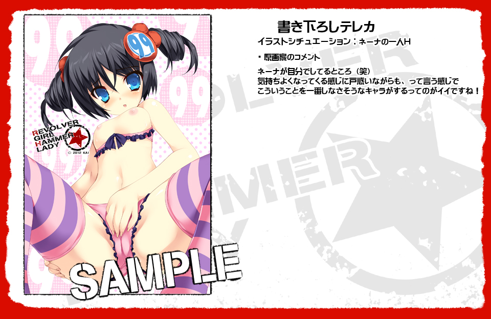 リヴォルバーガール☆ハンマーレディ Getchuで見る ブランド:KAI(過去の作品一覧) メディア:DVD-ROM 発売日:2012-08-31 定価:¥ 8,800(税込¥ 9,680) ジャンル:B級アクション風美少女活劇AVG 原画: 〆鯖コハダ シナリオ: ヒラマサ勘八、和泉万夜、さんきち、速水漣 音楽:春日森、溝口哲也、みくる アーティスト:ひうらまさこ 作詞/作曲:葉月ゆら/アメディオ 関連リンク Getchu.com:あらすじ、キャラクターを見る キャンペーン詳細は公式HPでご確認ください 予約キャンペーン アペンドディスク「KAI お楽しみディスク」 ~ 特典紹介画像URLについて 描き下ろし特典 投票数:151 ゲーマーズ ① 描き下ろしテレカ ・ 2012-08-17 更新 © KAI 投票数:20 Getchu.com ① 描き下ろしテレカ② ドラマCD ② ドキドキ!? 超刺激たっぷりのピンクマスタード! 2012-08-14 更新 © KAI 投票数:20 グッドウィル ① 描き下ろしB2タペストリー② リバーシブル下敷き ・ 2012-08-08 更新 © KAI 投票数:20 コムロード ① 描き下ろしテレカ ・ 2012-08-14 更新 © KAI 投票数:20 トレーダー ① 描き下ろしテレカ ・ 2012-08-17 更新 © KAI 投票数:20 メディオ ① 描き下ろしテレカ② 録り下ろしドラマCD ・ 2012-08-13 更新 © KAI 投票数:11 ソフマップ ① 描き下ろしB2特典② ドラマCD ② 女たちの裏カジノ潜入ミッション~恥辱給仕と快楽系機械姦の夜~ 2012-08-13 更新 © KAI 投票数:6 シーガル ① 描き下ろしテレカ ・ 2012-08-17 更新 © KAI 投票数:5 メロンブックス ① 描き下ろしB5ハードポスター② 描き下ろしステッカー ② 円形・直径 90mm 2012-08-20 更新 © KAI オフィシャル通販 投票数:11 オフィシャル通販 ① 描き下ろしテレカ② サウンドトラックCD ・ 2012-08-17 更新 © KAI << Prev Next >> DLタイトルPowered by FANZA Webサービス 【描き下ろし壁紙付き】青い空のカミュDL価格:¥ 8,580 リヴォルバーガール☆ハンマーレディDL価格:¥ 6,076 PENDULUMDL価格:¥ 7,124 WALPURGIS-ヴァルプルギス-DL価格:¥ 6,076 ブレイズハート DL版DL価格:¥ 6,076 魔女と剣と千の月+アペンドセットDL価格:¥ 8,580 魔女と剣と千の月DL価格:¥ 7,480